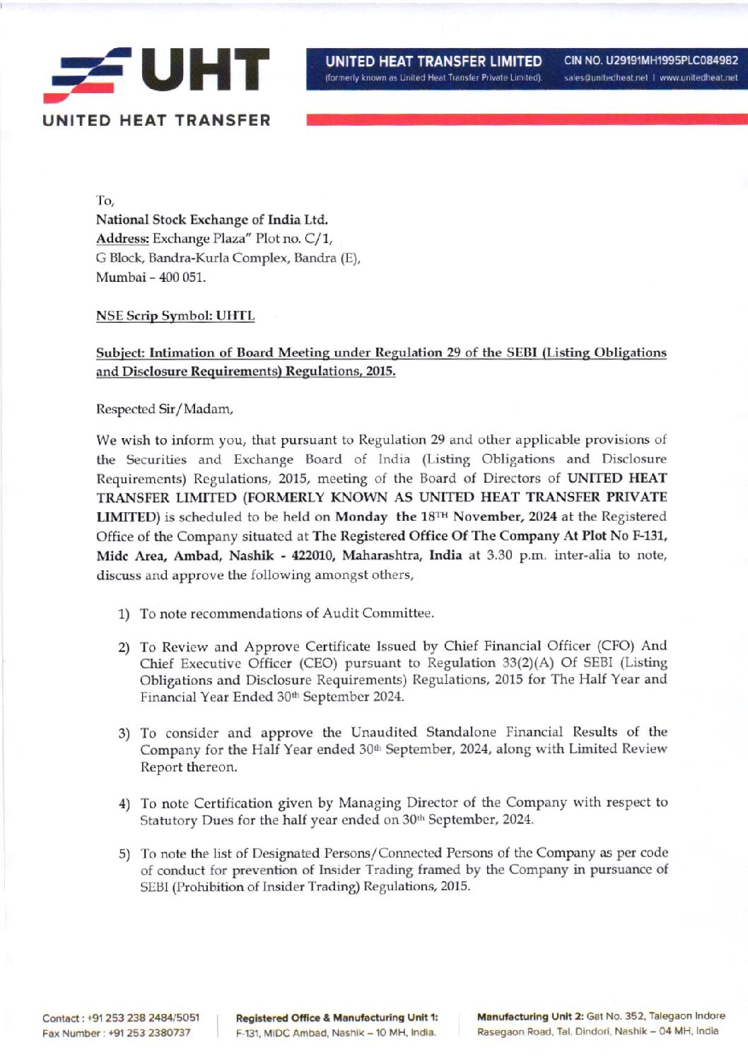 Intimation of Board Meeting 18.11.2024 By unitedheat.net August 19, 2025 No Comments Continue Reading