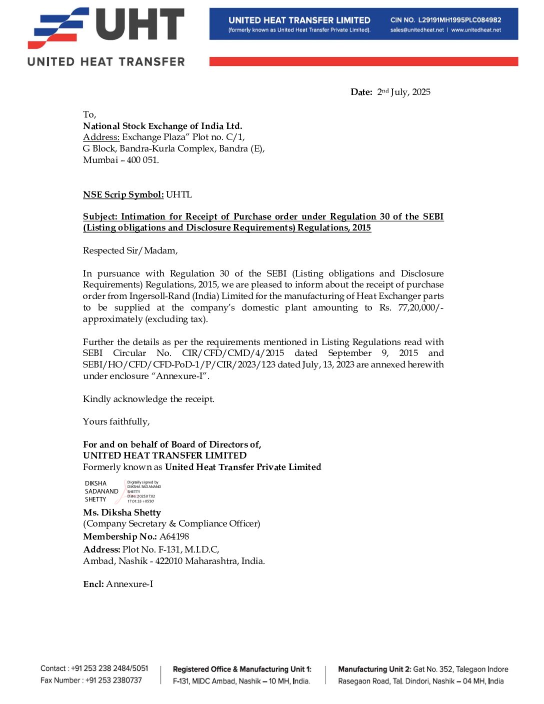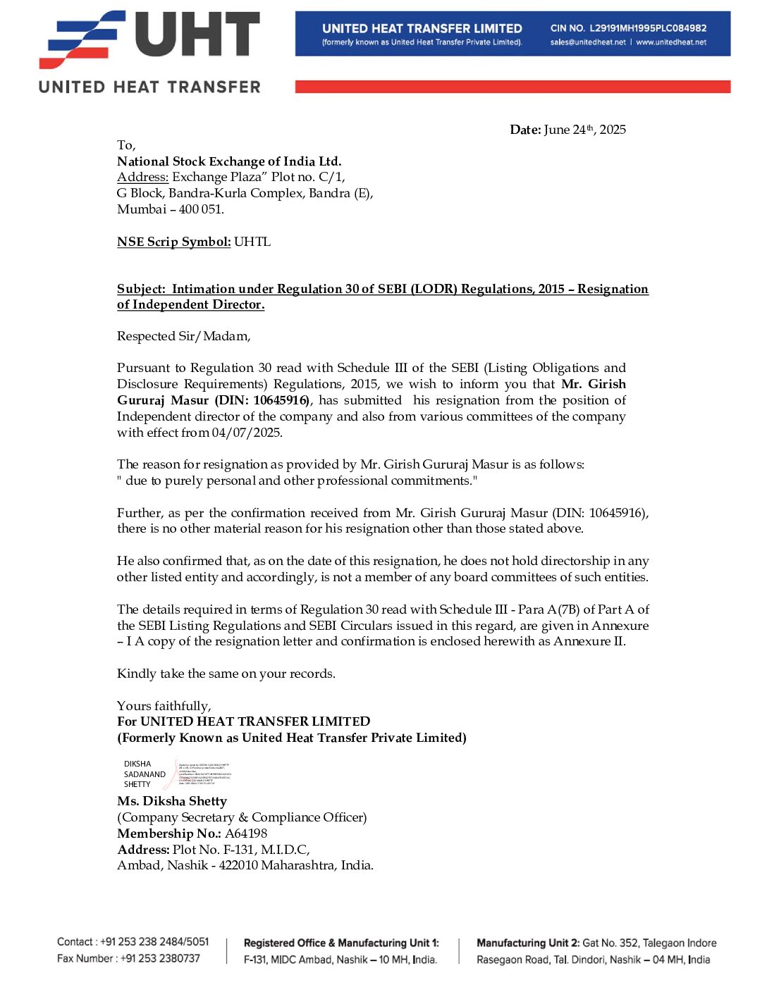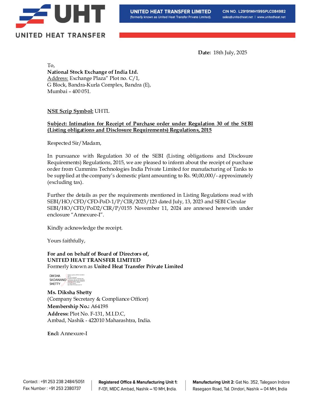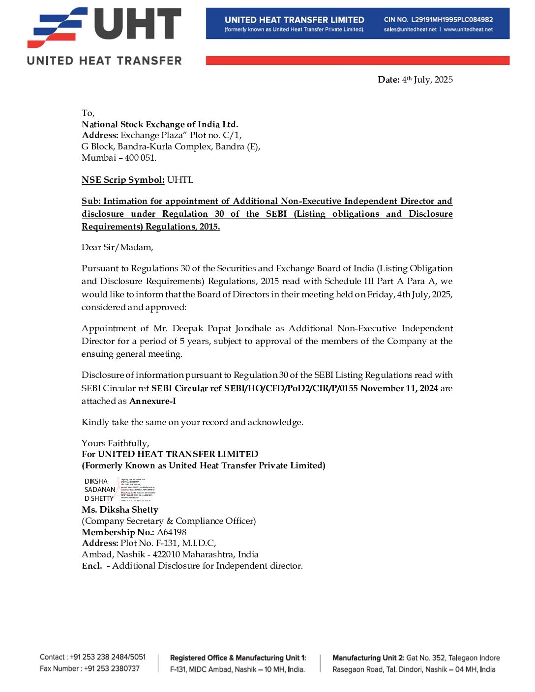 Intimation of Appointment of ID 04.07.2025 By unitedheat.net August 19, 2025 No Comments Continue Reading