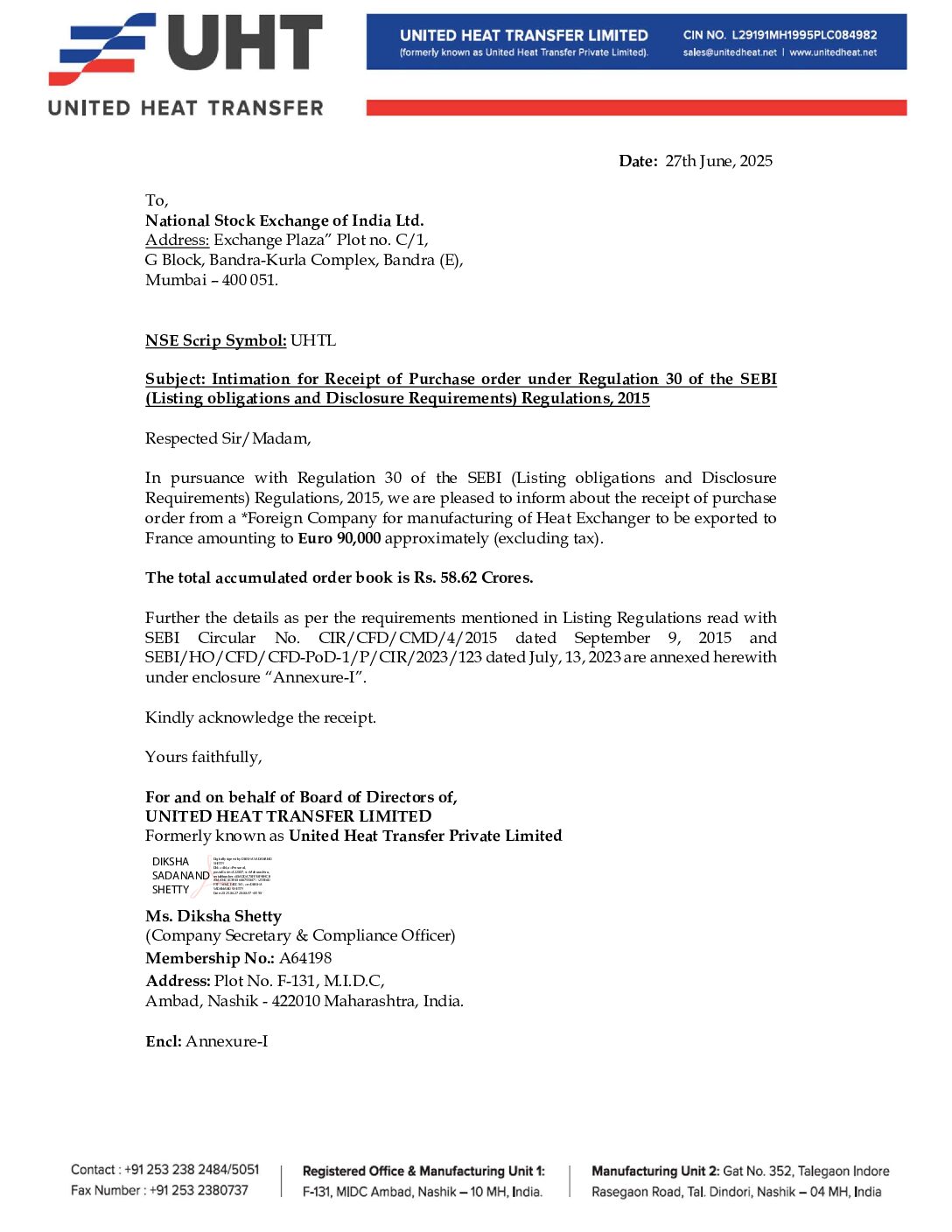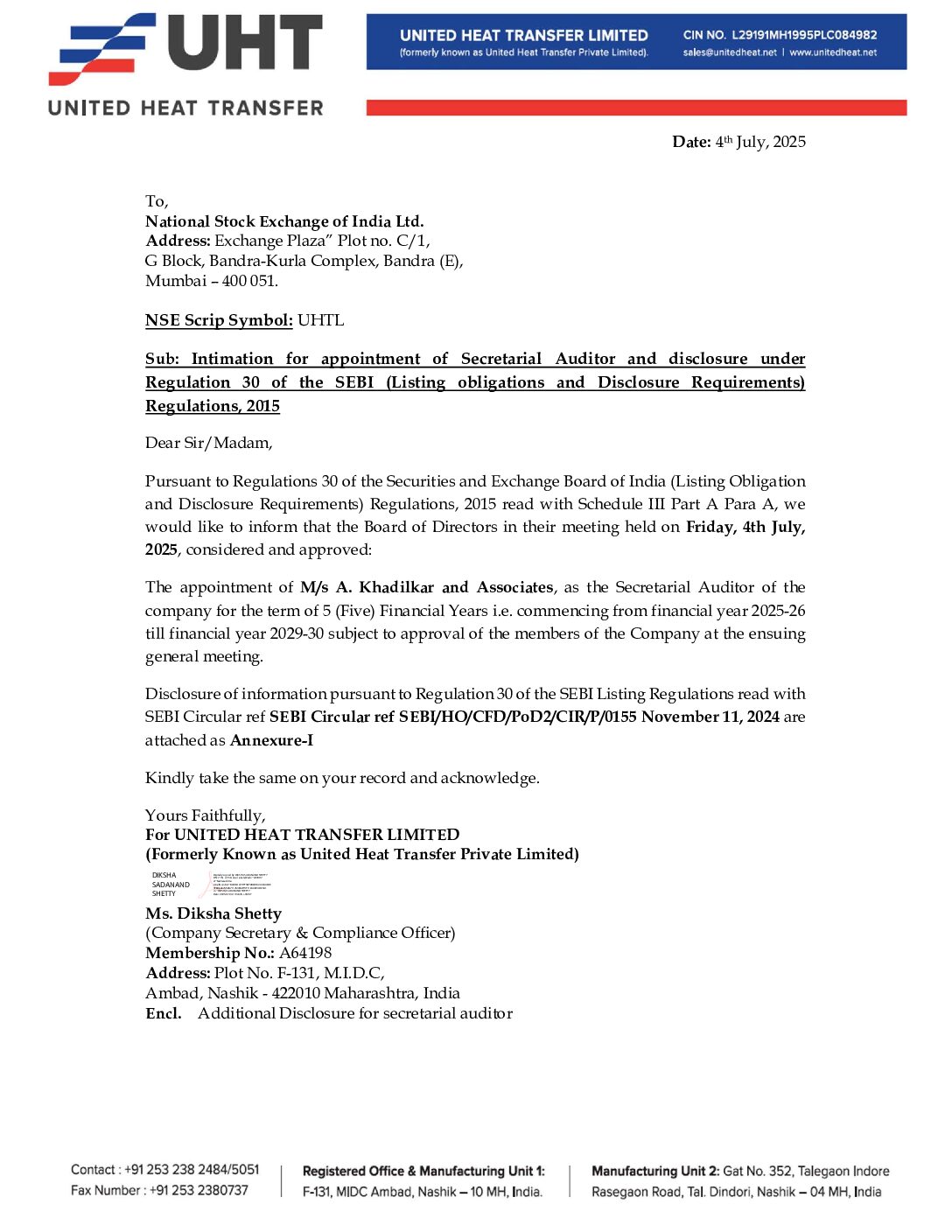 Intimation of Appointment of SA 04.07.2025 By unitedheat.net August 19, 2025 No Comments Continue Reading