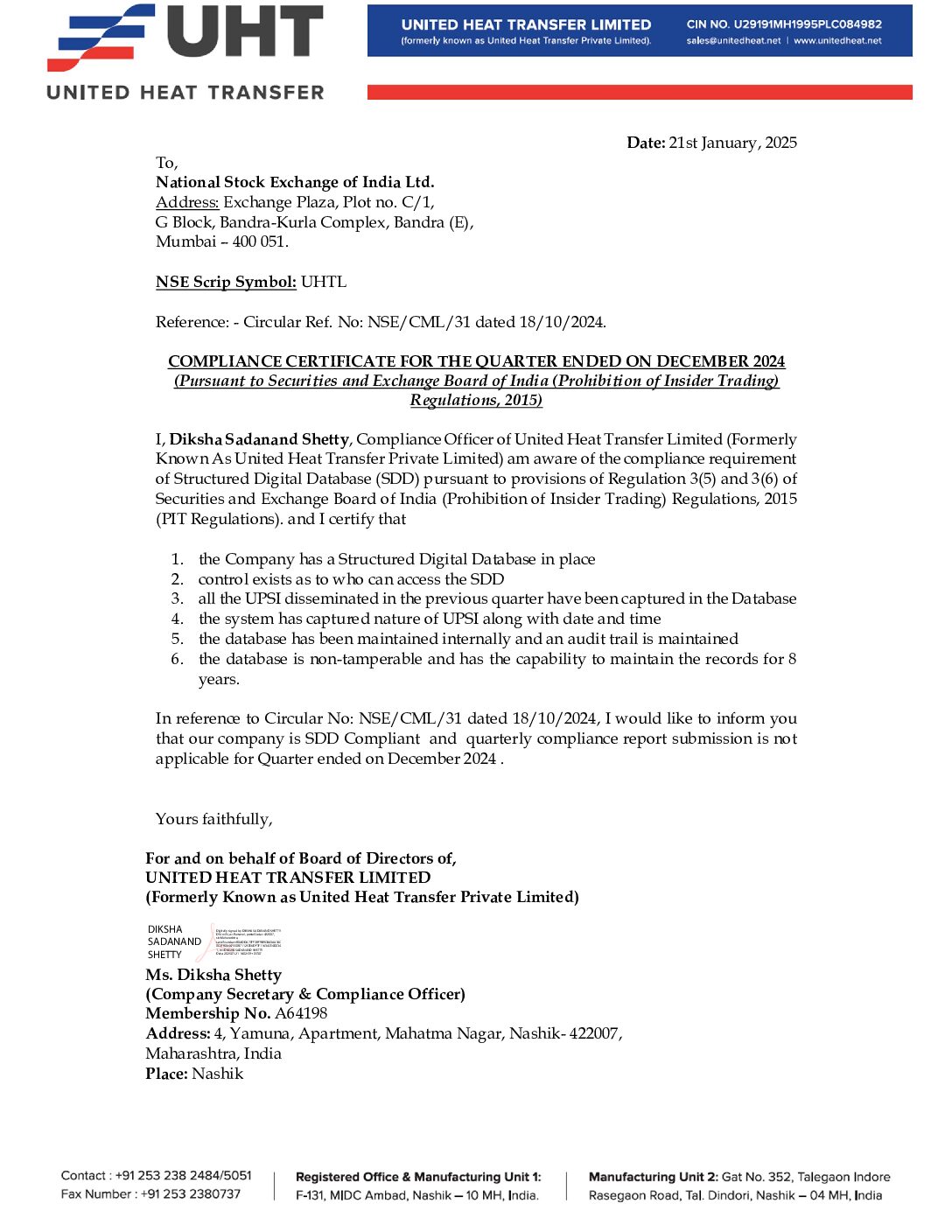 Certificate Under Reg 27 and 13 3 Dec 2024 By unitedheat.net August 19, 2025 No Comments Continue Reading